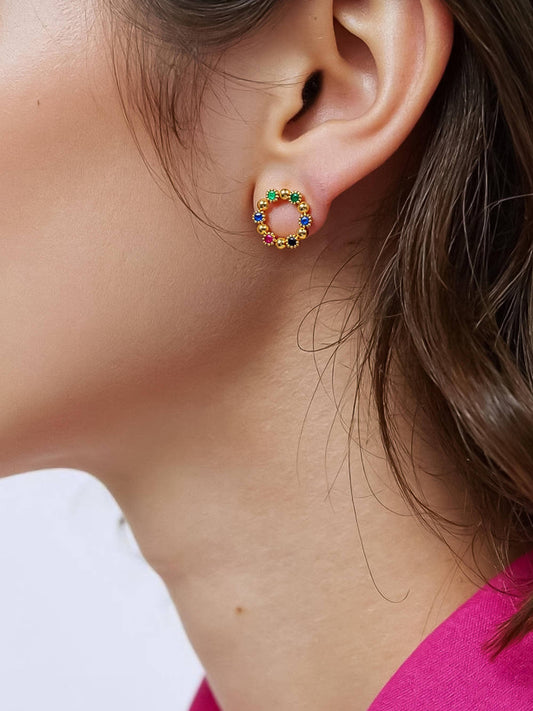 Manette 18K Gold Vintage Colorful CZ Earrings