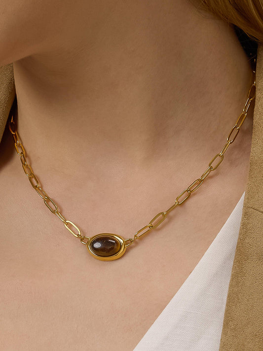 Shay 18K Gold Non-Tarnish Oval Stone Chain Necklace