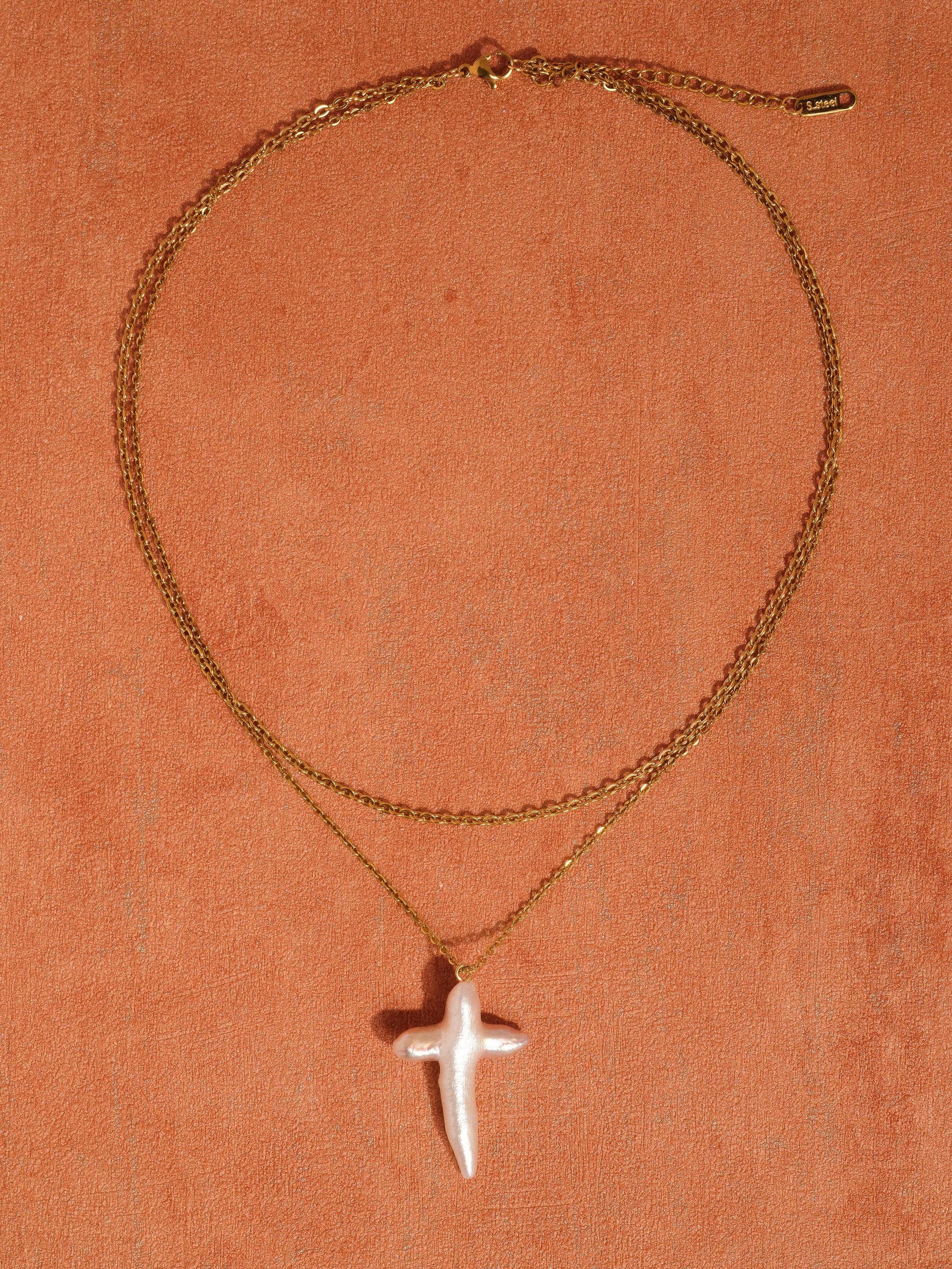 Elevate your look with timeless elegance. This 18K gold-plated necklace features a delicate cultured freshwater pearl cross pendant—a symbol of faith and sophistication. Designed with premium stainless steel for long-lasting wear, it’s both water-resistant and non-tarnish, ensuring lasting shine through every occasion.