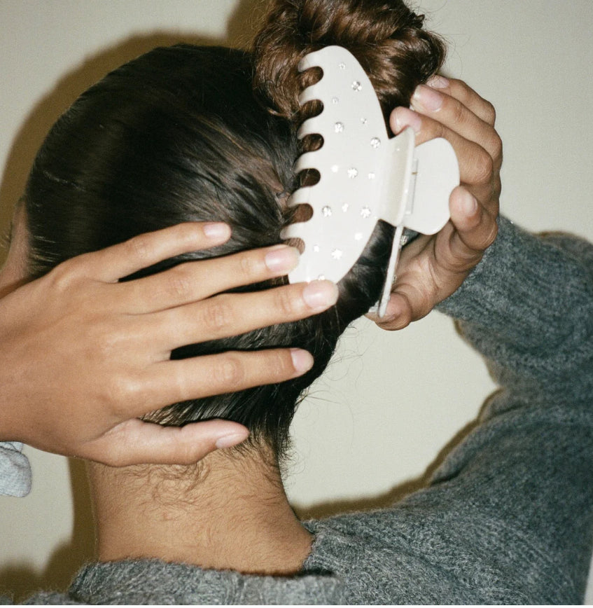 Our most-loved claw clip. Big enough to hold a full head of hair and functional enough to wear from morning to night. No pull, just good hair. Use this hair claw clip on dry or wet hair.