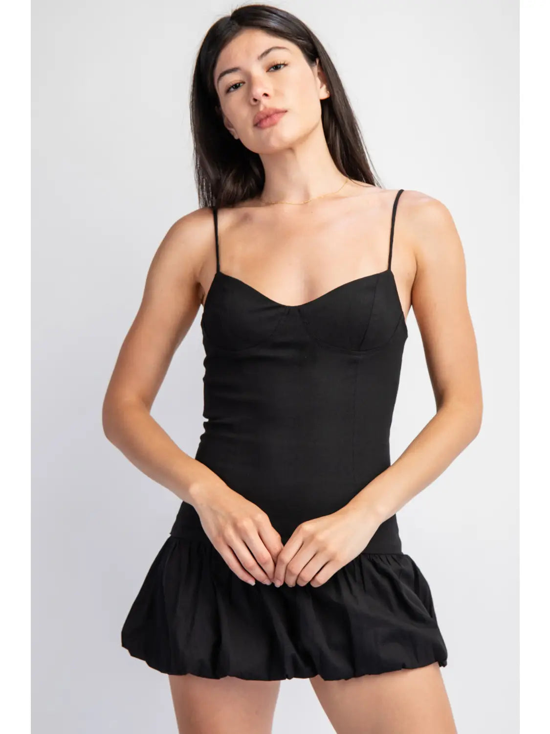 Transform any outfit with our Black Cami Dress! The stylish balloon hem adds a touch of whimsy and fun to your look. Perfect for day or night, this dress will be a wardrobe staple. Stand out from the crowd and make a statement with this must-have piece!