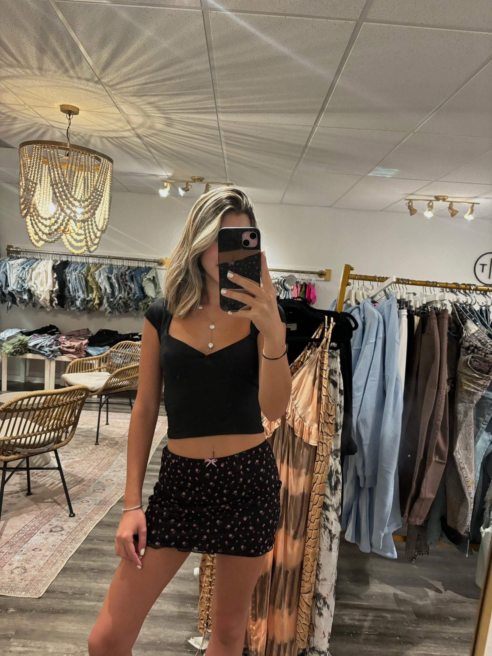 The Black Romi Skirt Junior, made by Katie j, features a black ditsy floral design that is sure to make a stylish statement. Perfect for juniors, this skirt is both fashionable and comfortable, making it a must-have in any wardrobe.
