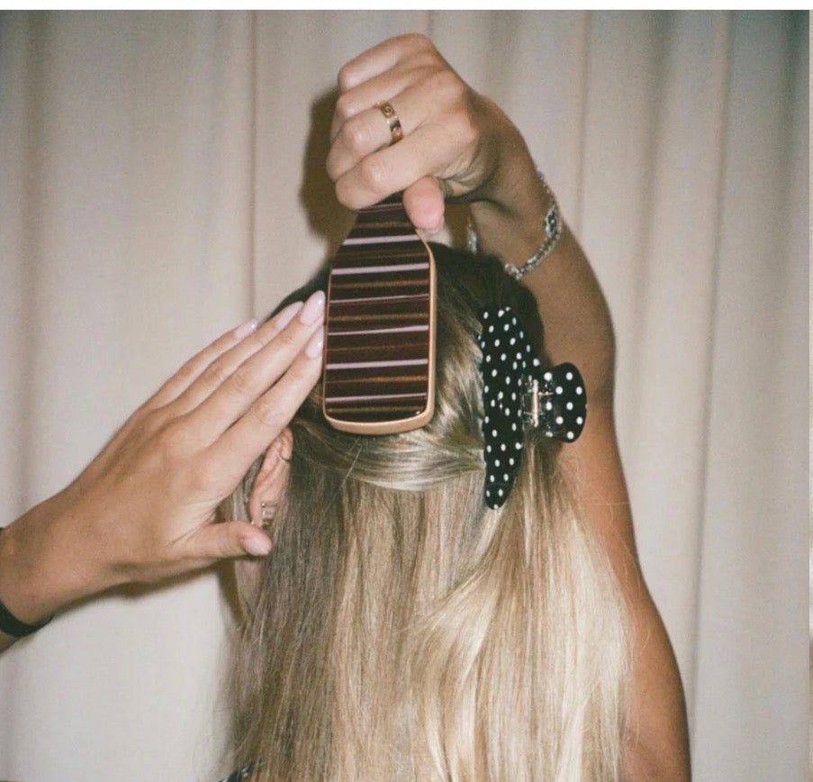 Enhance your on-the-go hairstyles with the Mini Boar Bristle Brush. Crafted with precision using high-quality natural boar bristles, this brush smoothly glides through your hair, aiding in the even distribution of your hair's natural oils. As a result, you'll enjoy a stunningly sleek and shiny finish with a strong, even hold that elevates your look. This brush is designed to meet the needs of all hair types, ensuring a flawless look every time.