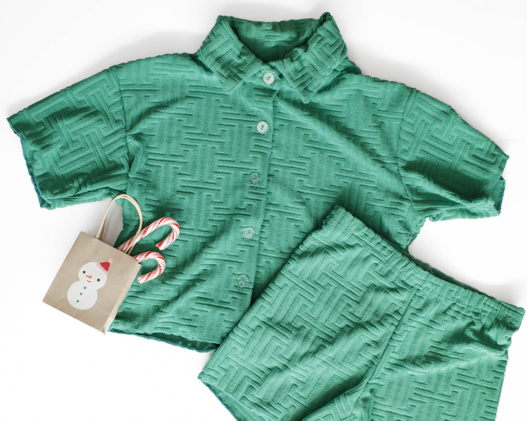 This Terry Print Set is perfect for tweens, featuring a stylish print of available in green and black. The soft fabric ensures optimum comfort for all-day wear. Super cute and stylish!