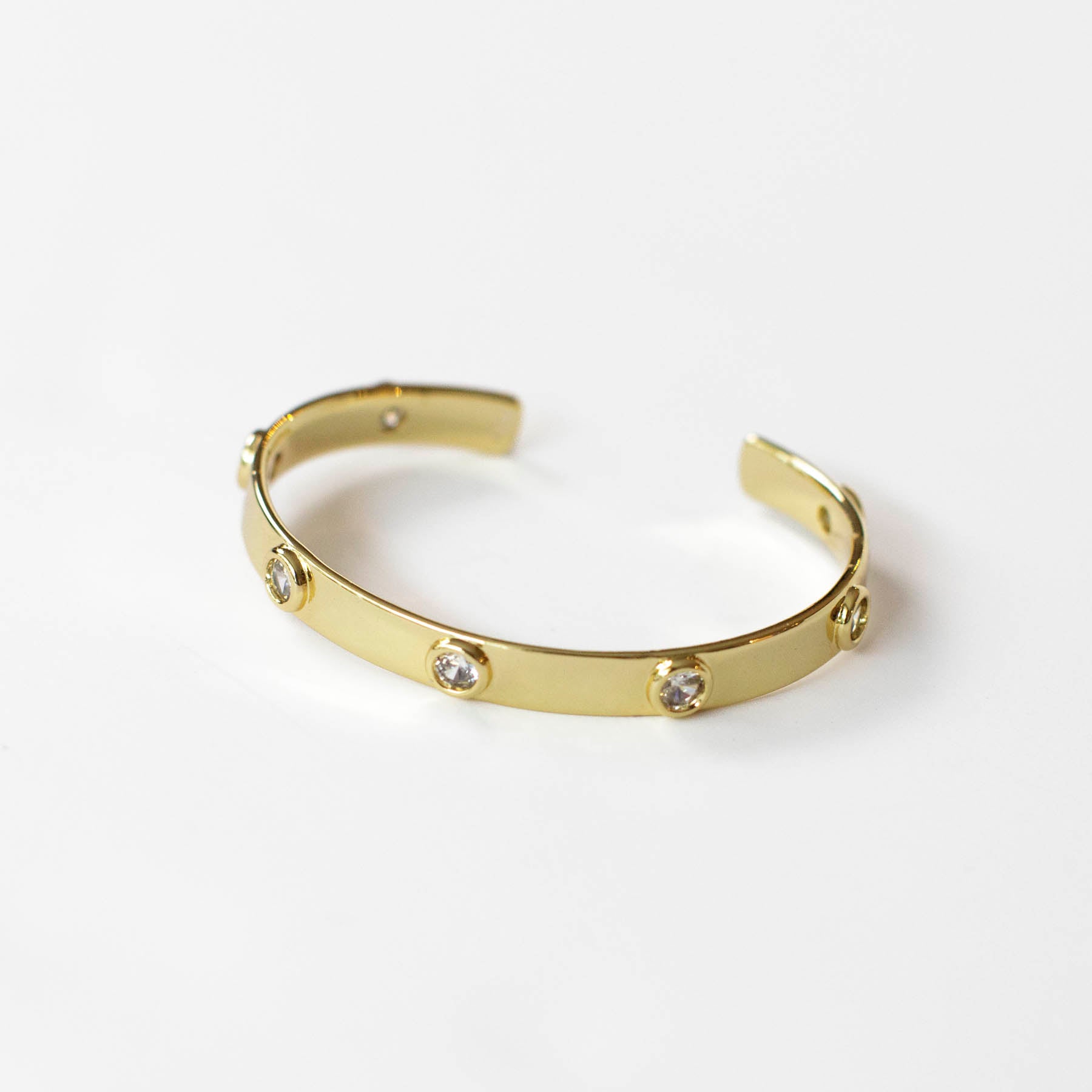 Crafted for the discerning fashionista, our Diamond Gold Cuff effortlessly combines luxury and elegance. Made of the finest gold and adorned with sparkling diamonds, this cuff adds a touch of sophistication to any outfit. Perfect for special occasions or everyday wear, it's a must-have for those who appreciate refined style.