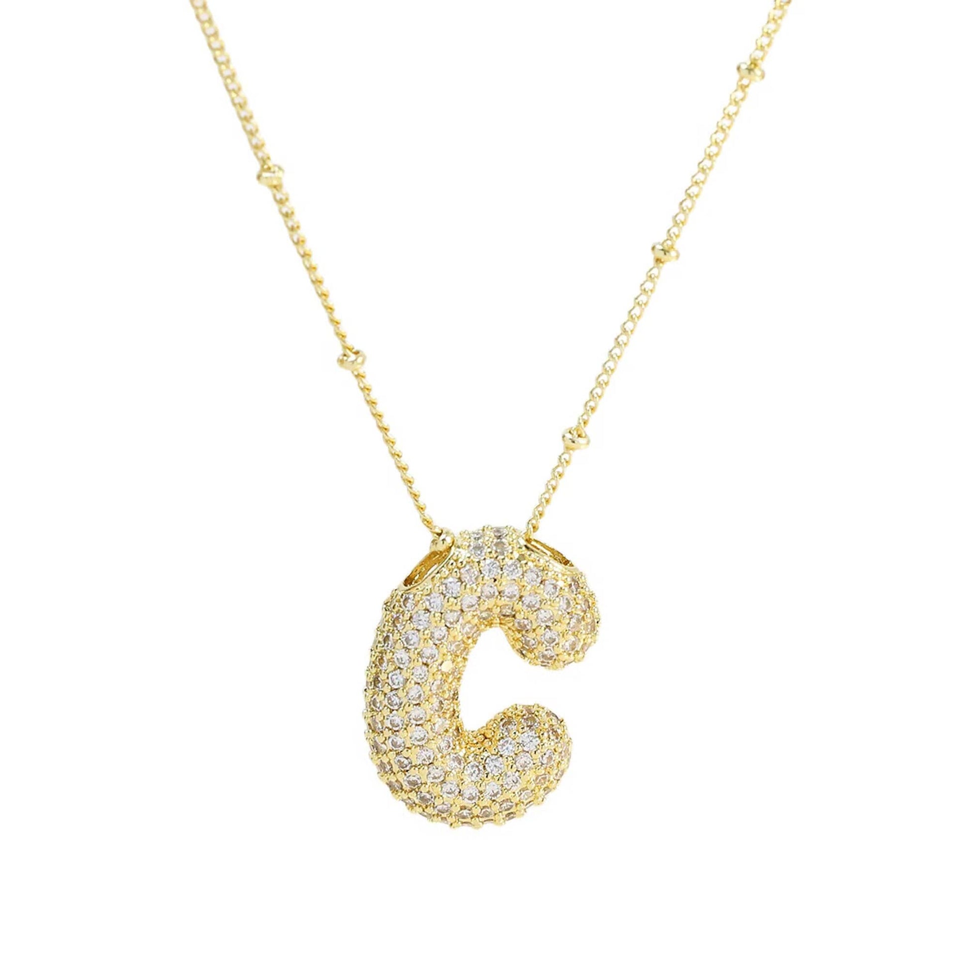 Initial CZ Balloon Bubble 18K Gold Necklace