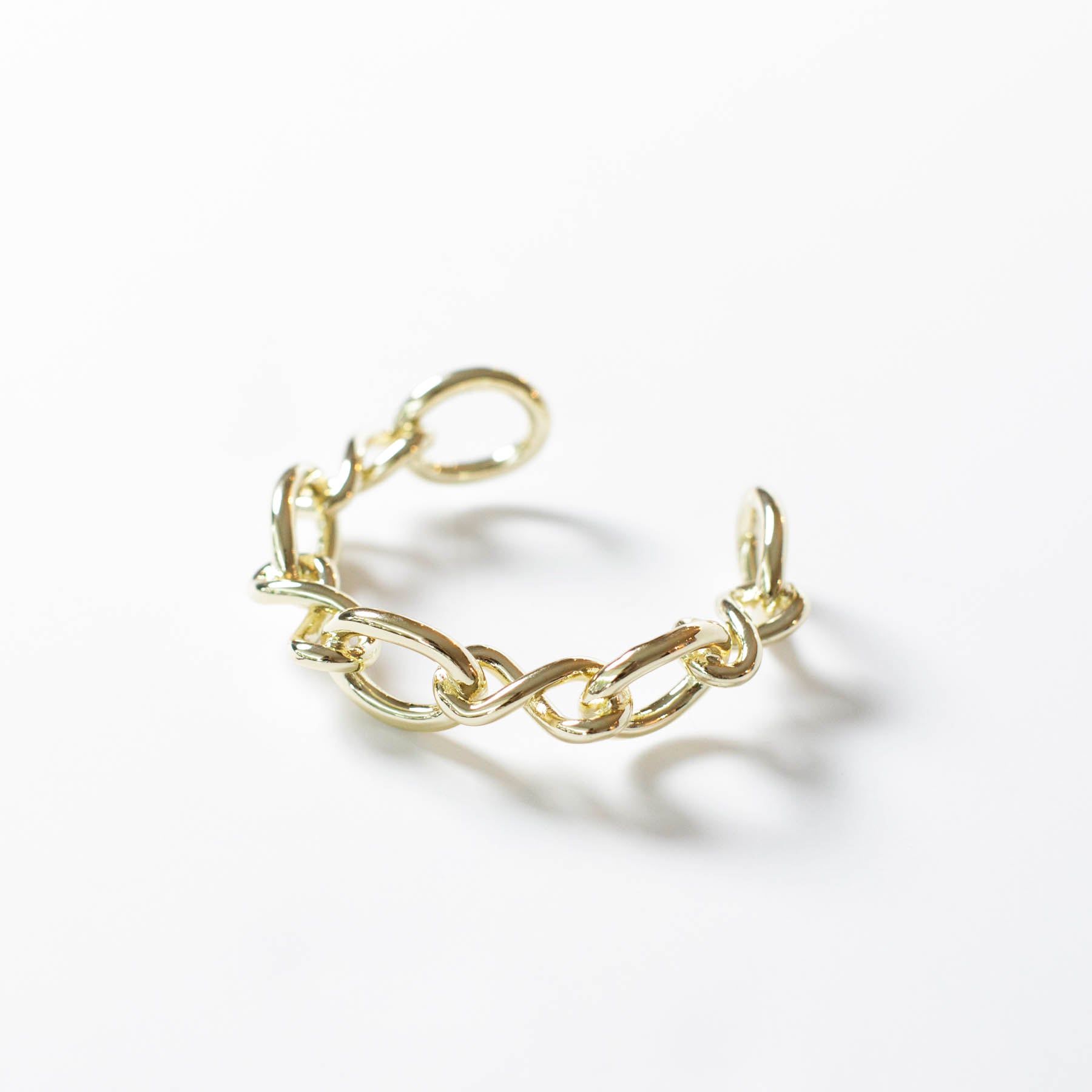 This large gold chain cuff is a stylish addition to any outfit. Made with high-quality materials, it adds a touch of elegance and luxury. With its bold design and perfect fit, it is sure to make a statement and elevate any look. Perfect for any occasion, this cuff is a must-have for any fashion-forward individual.