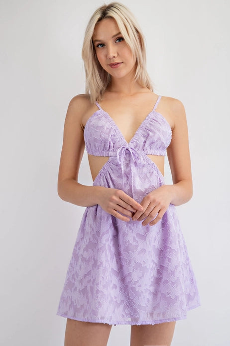 Lilac Floral Embroidered Chiffon Ruched Mini Dress