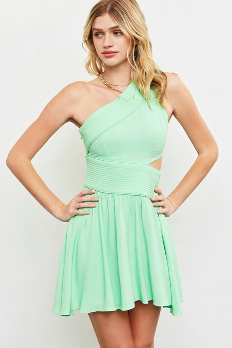 Elevate your spring wardrobe with our stunning Mint One Shoulder Ruffle Dress! Featuring a delicate one shoulder design and playful ruffle details, this dress is perfect for any special occasion. The gorgeous mint color adds a refreshing touch, making you stand out in a sea of black dresses. Feel confident and stylish all day long! Sized for woman.