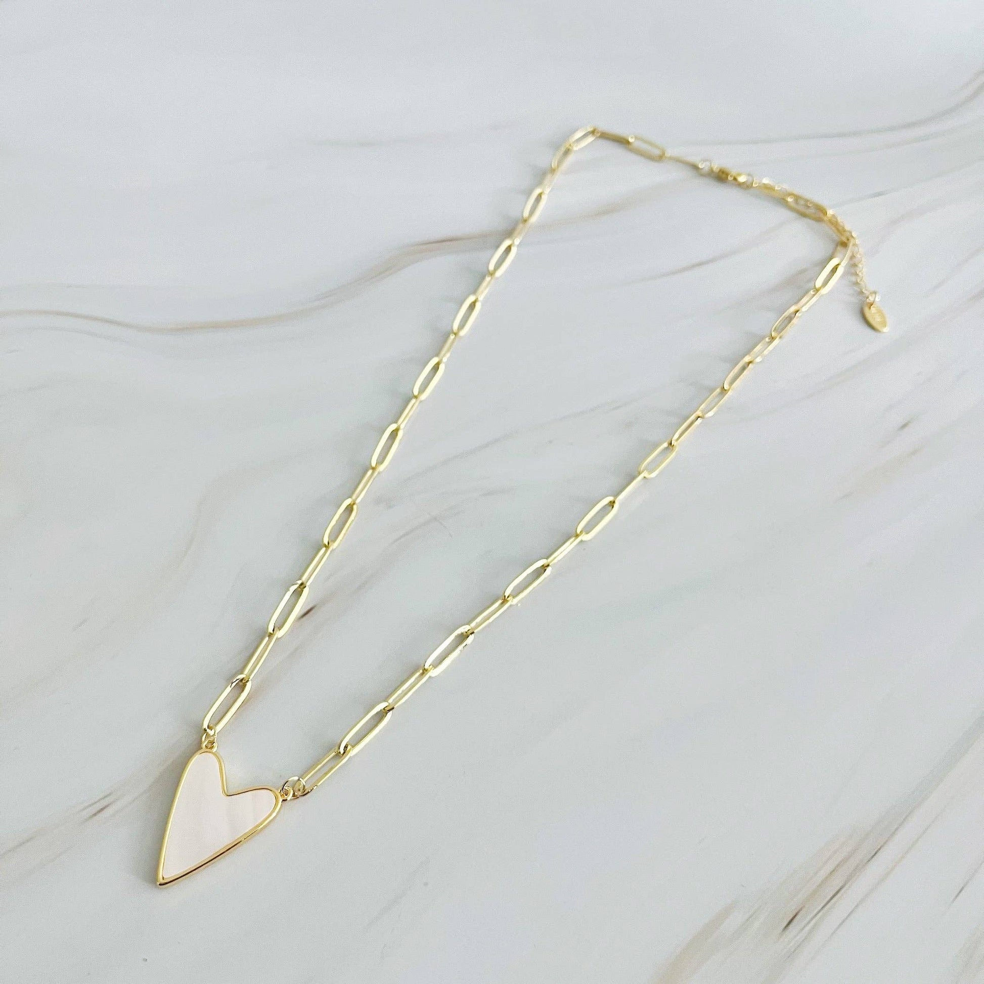 This My Heart Link Chain Necklace features a modern chain design and classic heart, making it a versatile accessory for any outfit. Perfect for layering, this necklace adds a touch of elegance to your look. Expertly crafted for a timeless and sophisticated appeal.