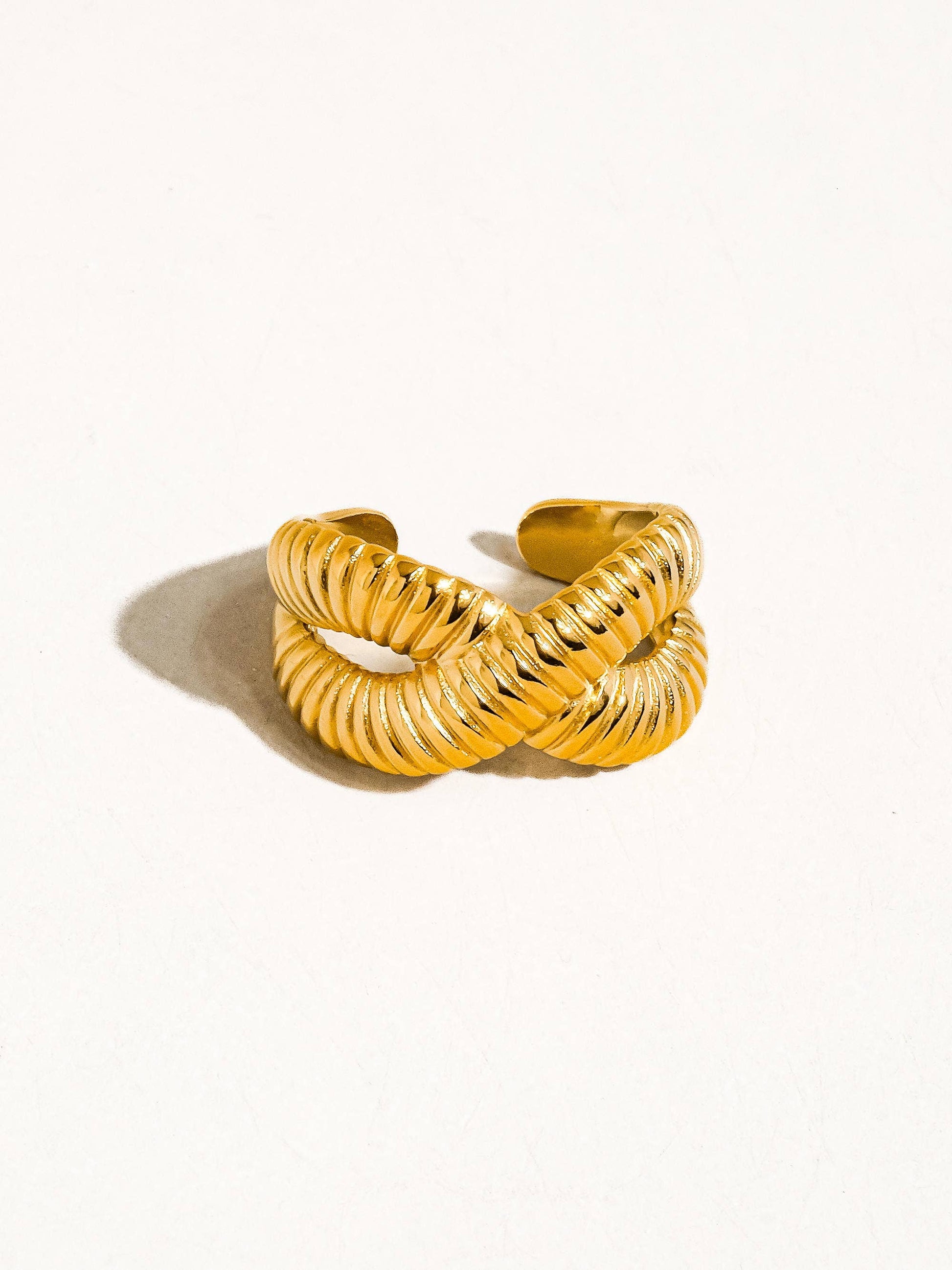 Nia 18K Gold Non-Tarnish Cross Spiral Ring