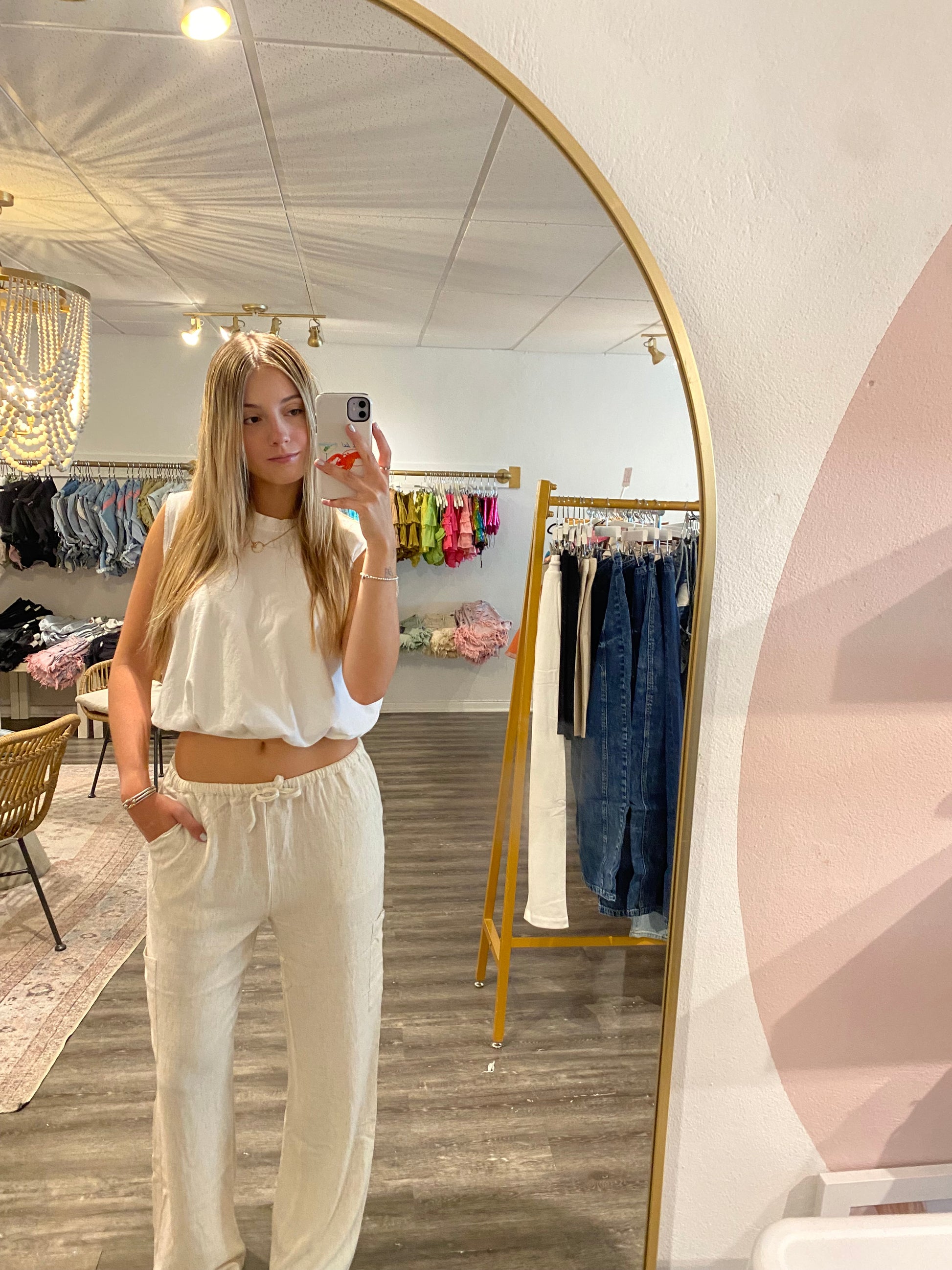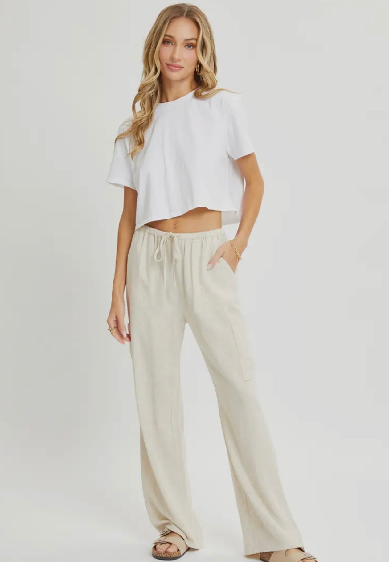 These oatmeal linen pants are designed for ease and comfort with a lined pull-on style. Made from high-quality linen, they are perfect for both casual and dressy occasions. The neutral oatmeal color adds versatility to any wardrobe.
