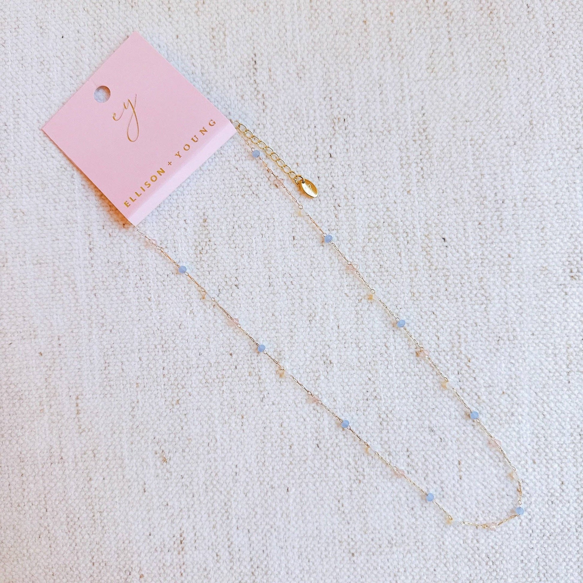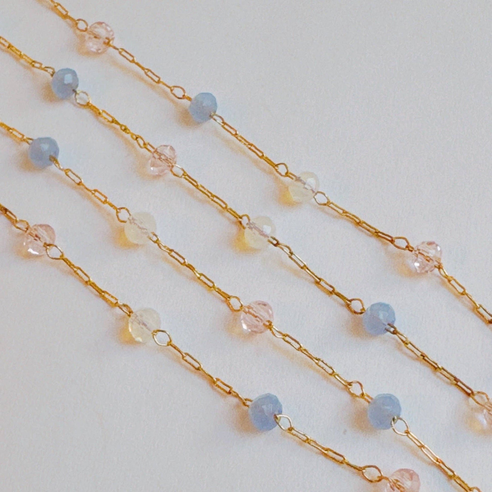 The beautiful, soft-colored beads resemble water droplets, while the delicate chain adds a feminine touch. Wear it alone or layer it for a chic and sophisticated look. Perfect for any occasion.