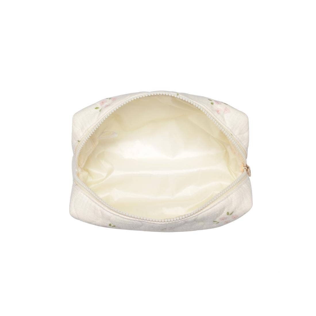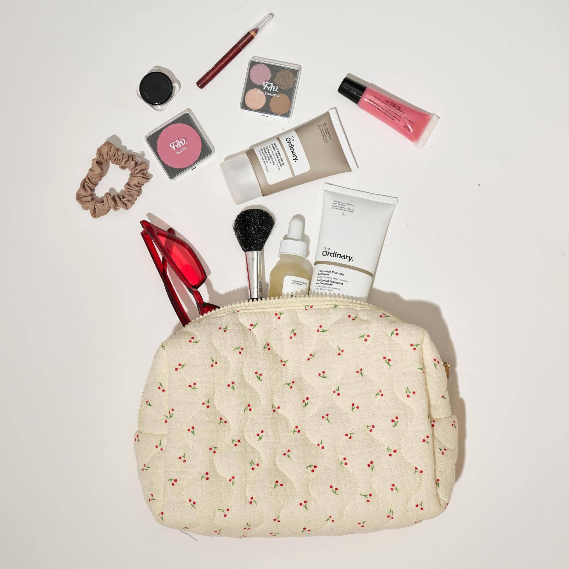 The Quilted Keeper Cosmetic Pouch combines style and practicality, offering a variety of beautiful prints to match any personality or occasion. Perfect for storing makeup, toiletries, or other essentials, its spacious interior ensures easy organization, while the soft quilted texture adds a touch of sophistication. Lightweight and durable, this pouch features a secure zipper closure to keep everything in place, making it ideal for both daily use and travel. With its charming design options and functional versatility, the Quilted Keeper is a must-have accessory for those who value style and convenience.