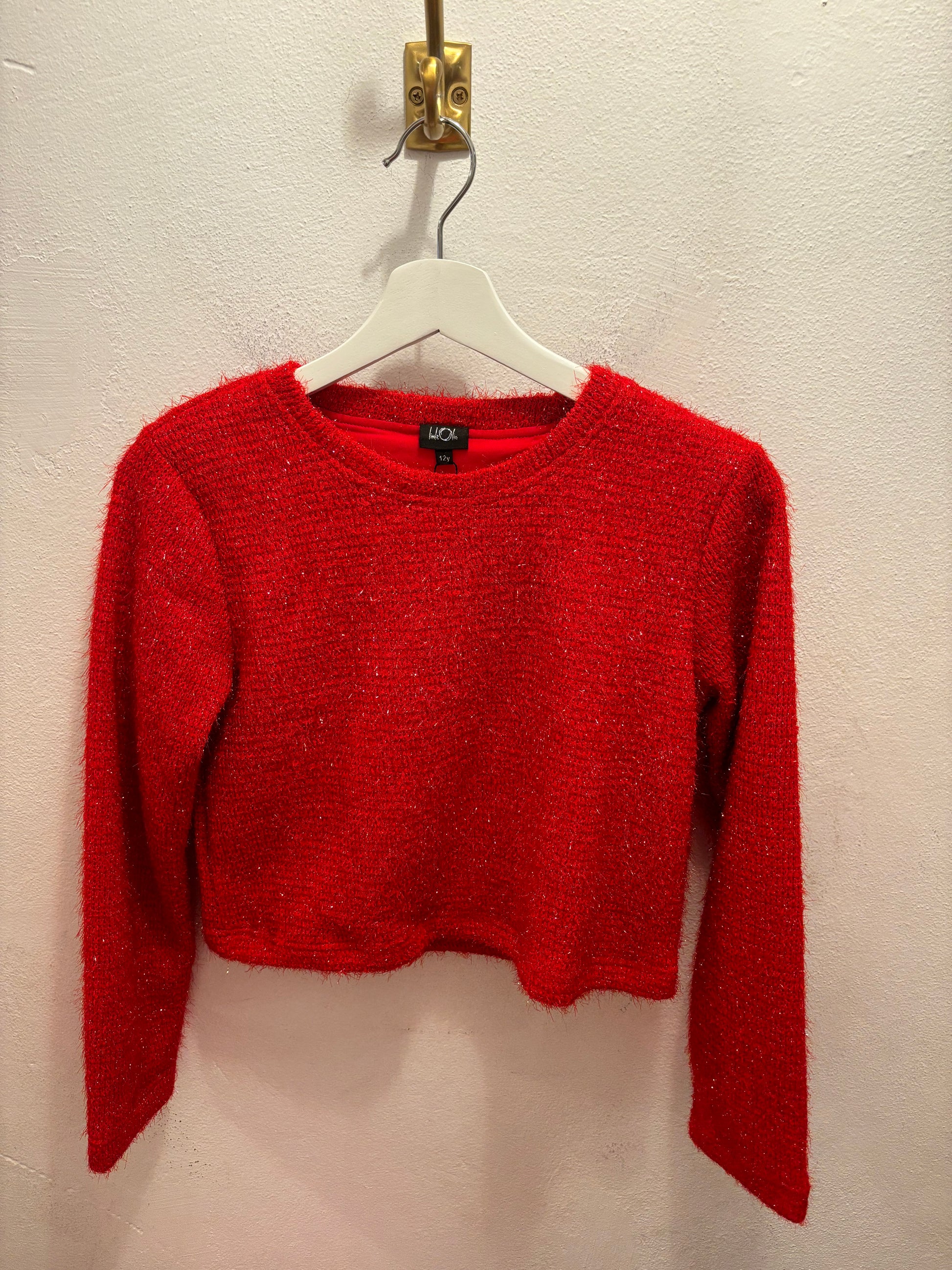Introducing our latest addition - the Red Sparkle Sweater LO from little Olin. Available in tween sizes, this cozy yet stylish sweater features a subtle sparkle that adds a touch of glamour to any outfit. Perfect for colder months, stay warm while looking fabulous in this must-have piece.