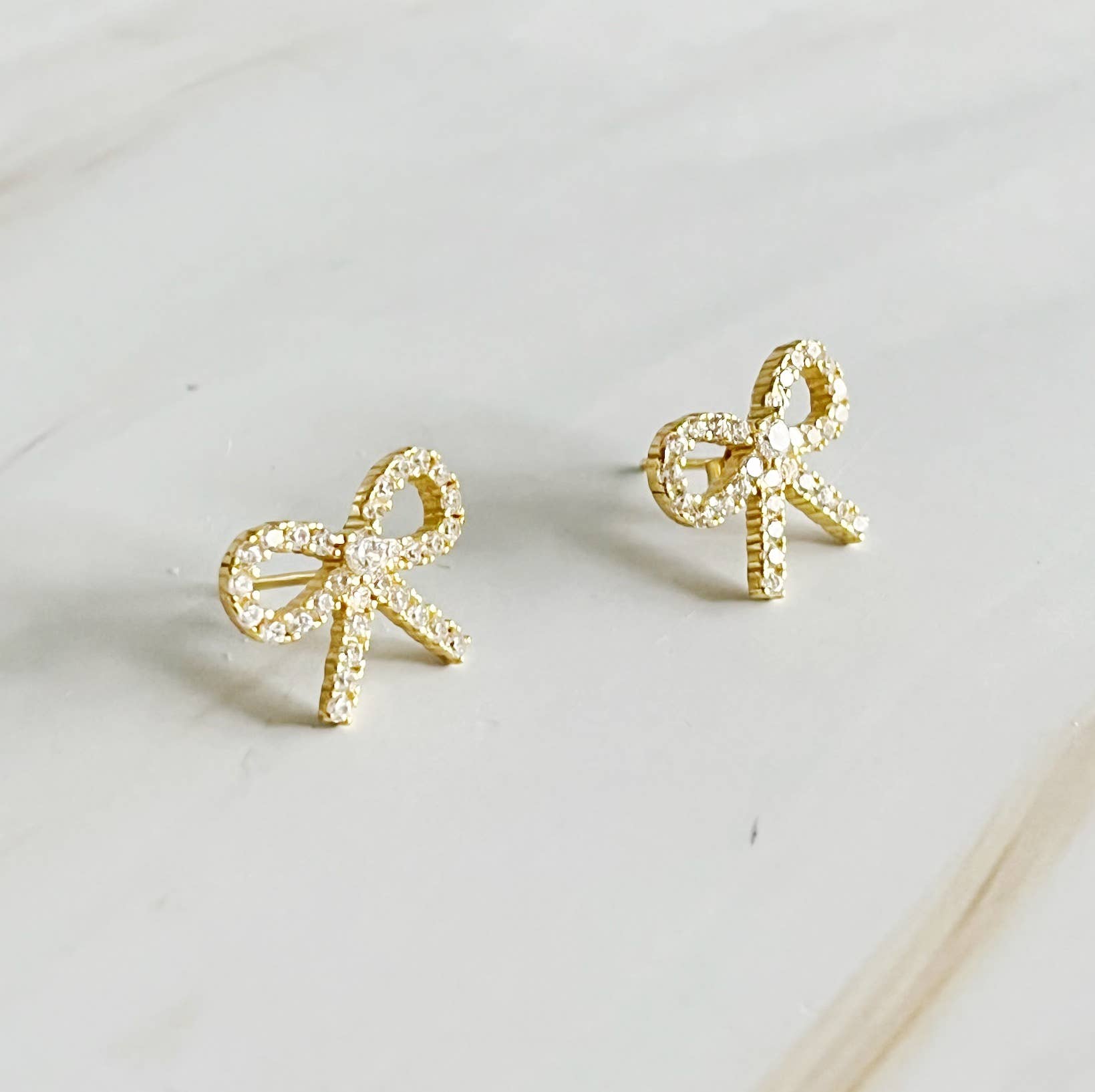 Crafted with sterling silver, the Shine Mini Bow Earrings add a touch of adorable shine and classic elegance to any outfit. Expertly designed, these earrings beautifully complement any style with their timeless appeal. Elevate your look with these must-have earrings.