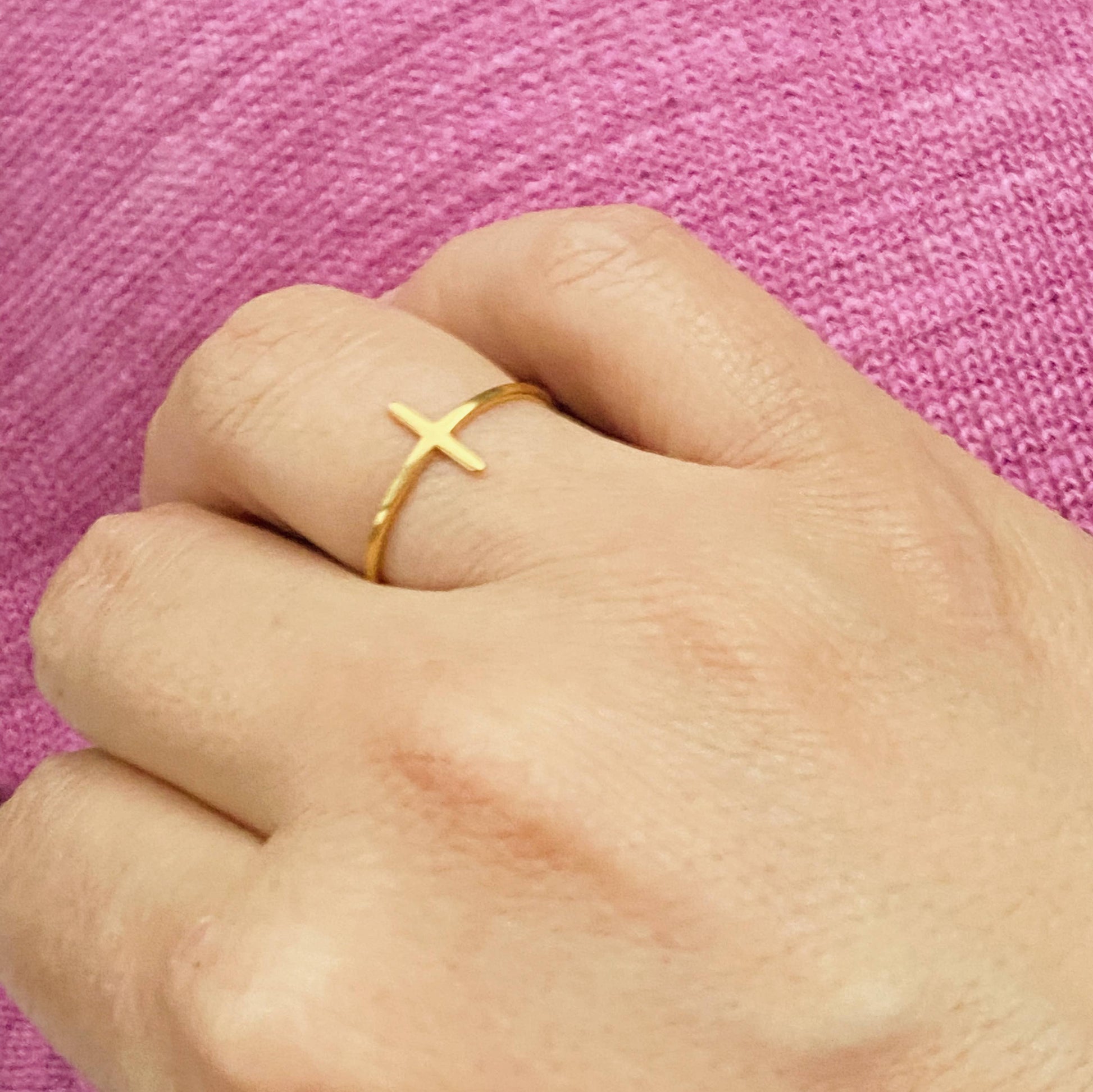 Such a precious slim dainty side cross ring. Size 7 is only size, can be worn any finger that fits and it will add extra edge to your style.