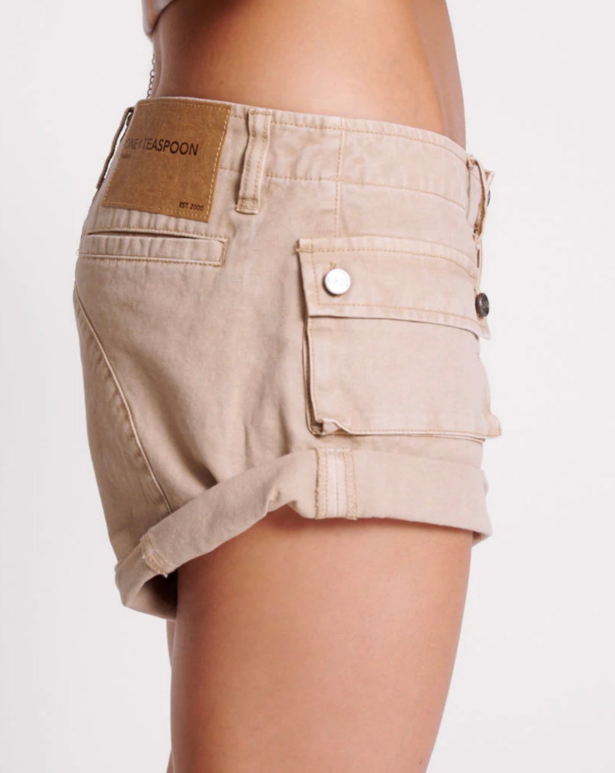 Expertly crafted for style and comfort, Stone Canvas Cadet Bandits Low Waist Shorts from One Teaspoon combine durability and a flattering low waist design. Perfect for any casual occasion, these denim shorts elevate any outfit with their versatile stone color and edgy cadet bandit style.