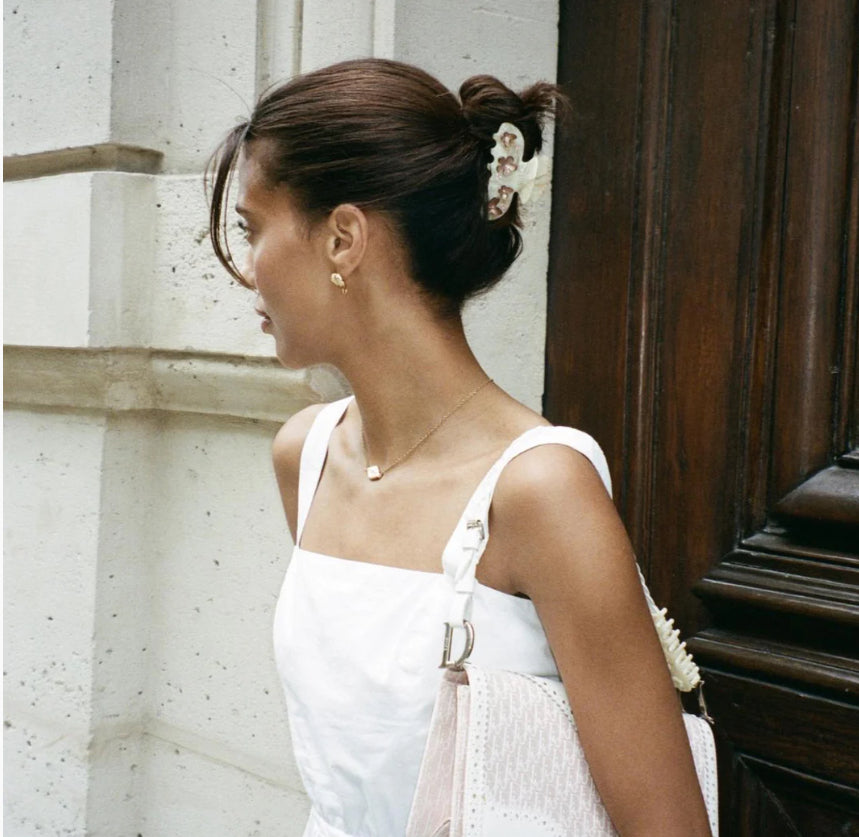 Sweet as can be, this clip is made with beautiful tiny stones and cellulose acetate. Designed with love and ultra-femininity in mind, our Sweetheart Clip will hold your hair from morning until night. Perfect for a low bun or half-up-half-down look.