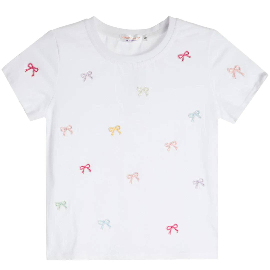 Introducing the Mini Bows Tee, where playful design meets cozy comfort. This charming t-shirt, from our trendy kids' collection, is decorated with cute mini bows that add a delightful touch to any outfit. Loved by celebrity families, our line is celebrated for its super soft materials and distinctive styles that kids adore.